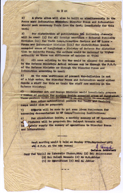 Dr. Bilayet Hossain attended these meetings as an official employee. Dr. Hossain was an advisor to the ministry of defense during the war.
